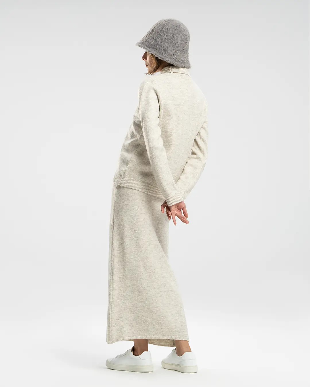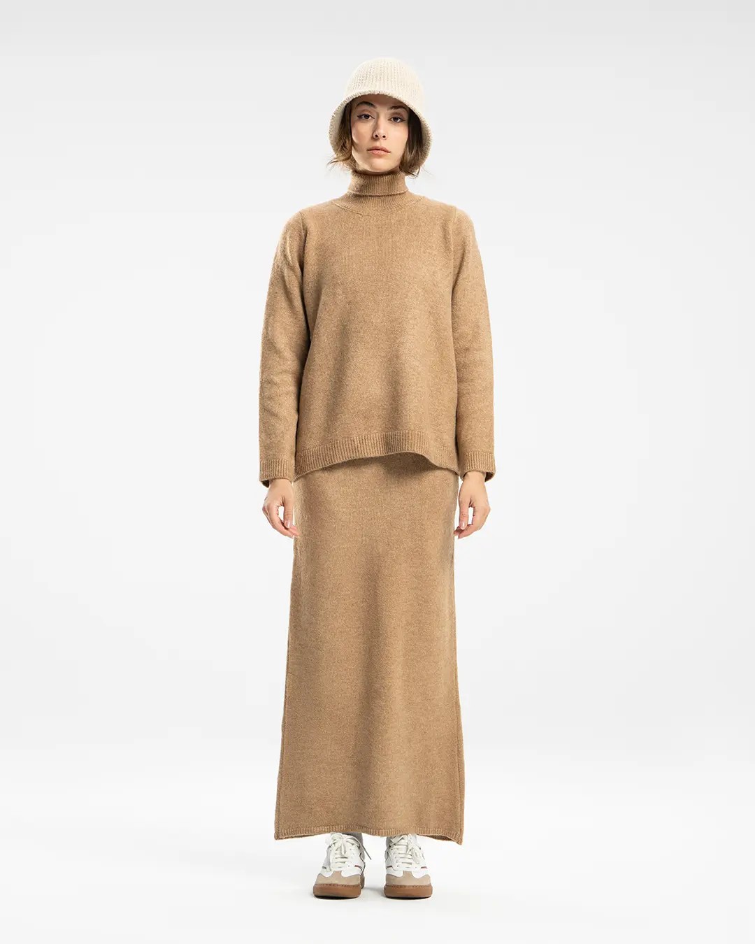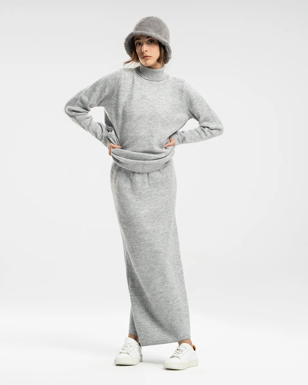 جزئیات مدل : ست یقه اسکی و دامن بافت