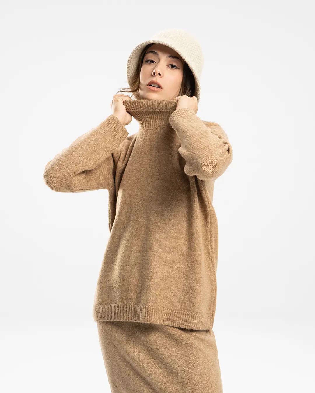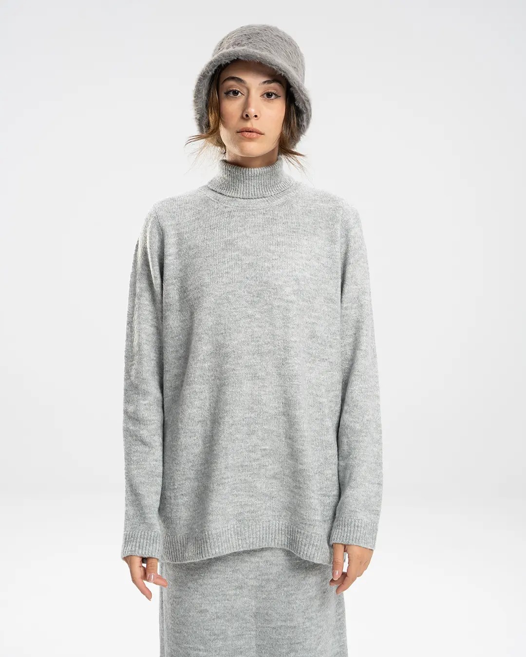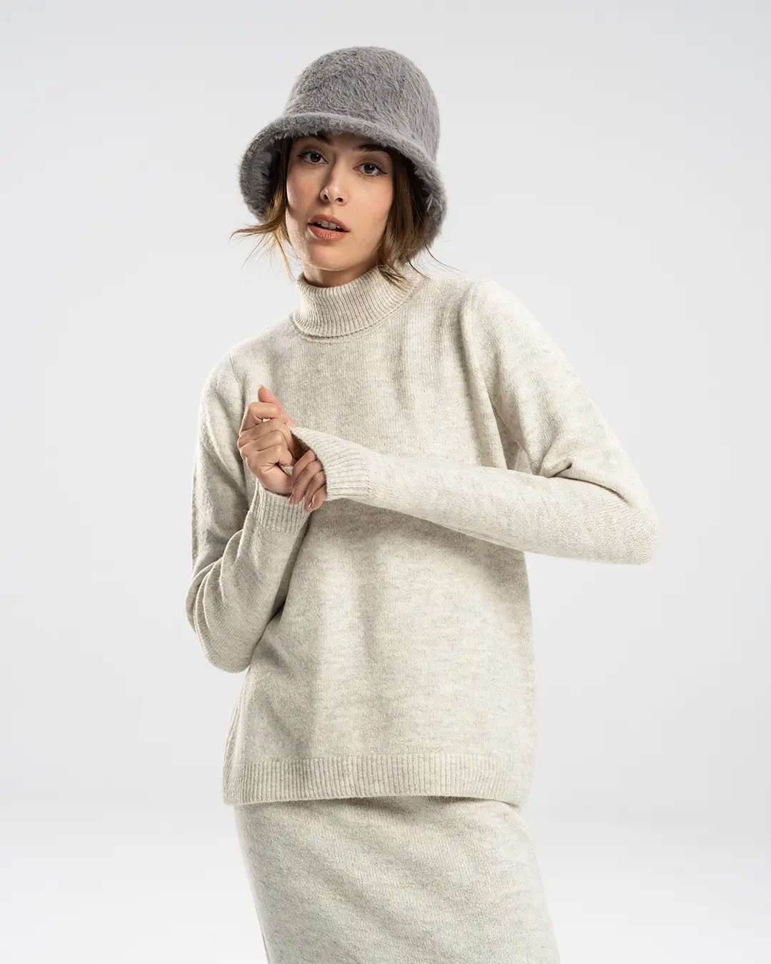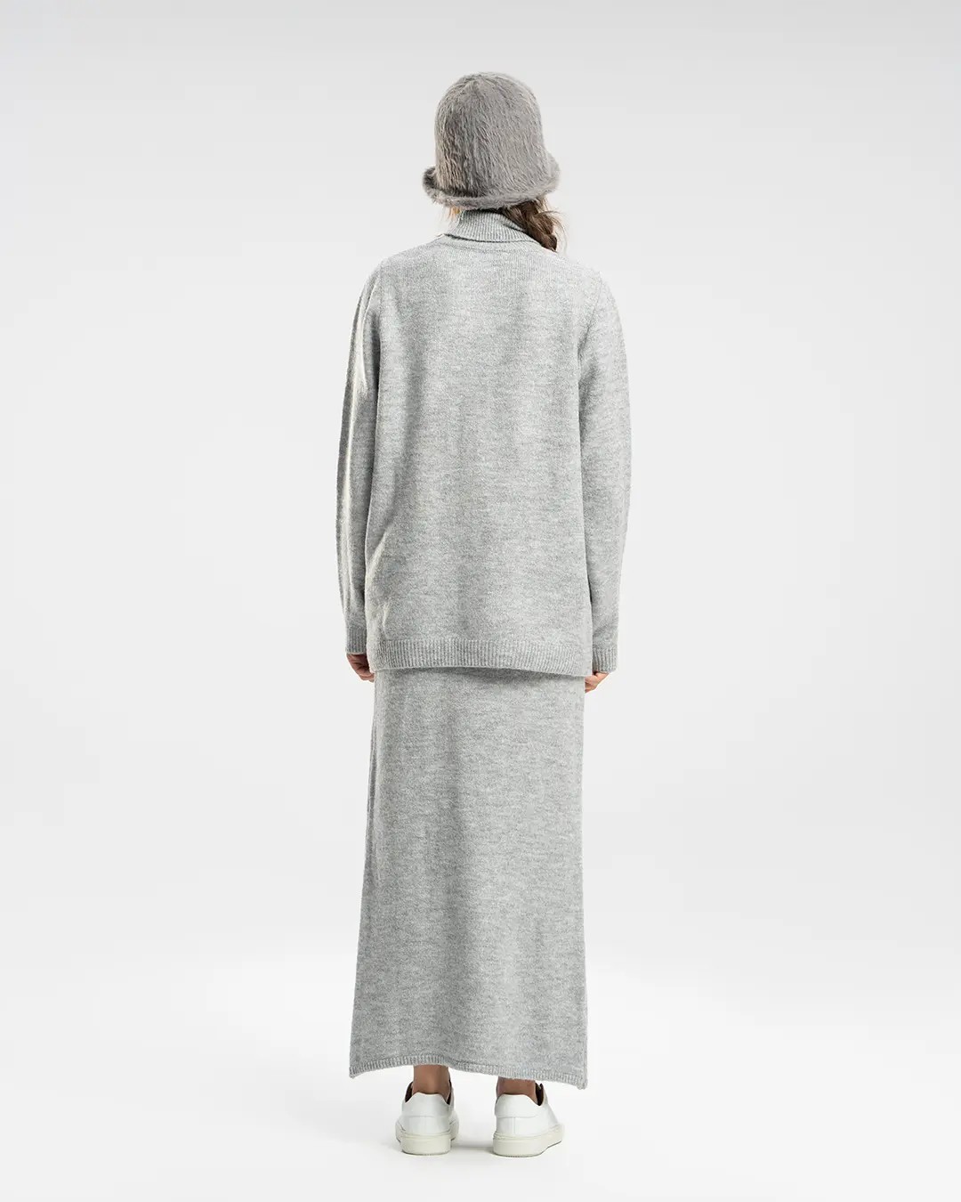 جزئیات مدل : ست یقه اسکی و دامن بافت