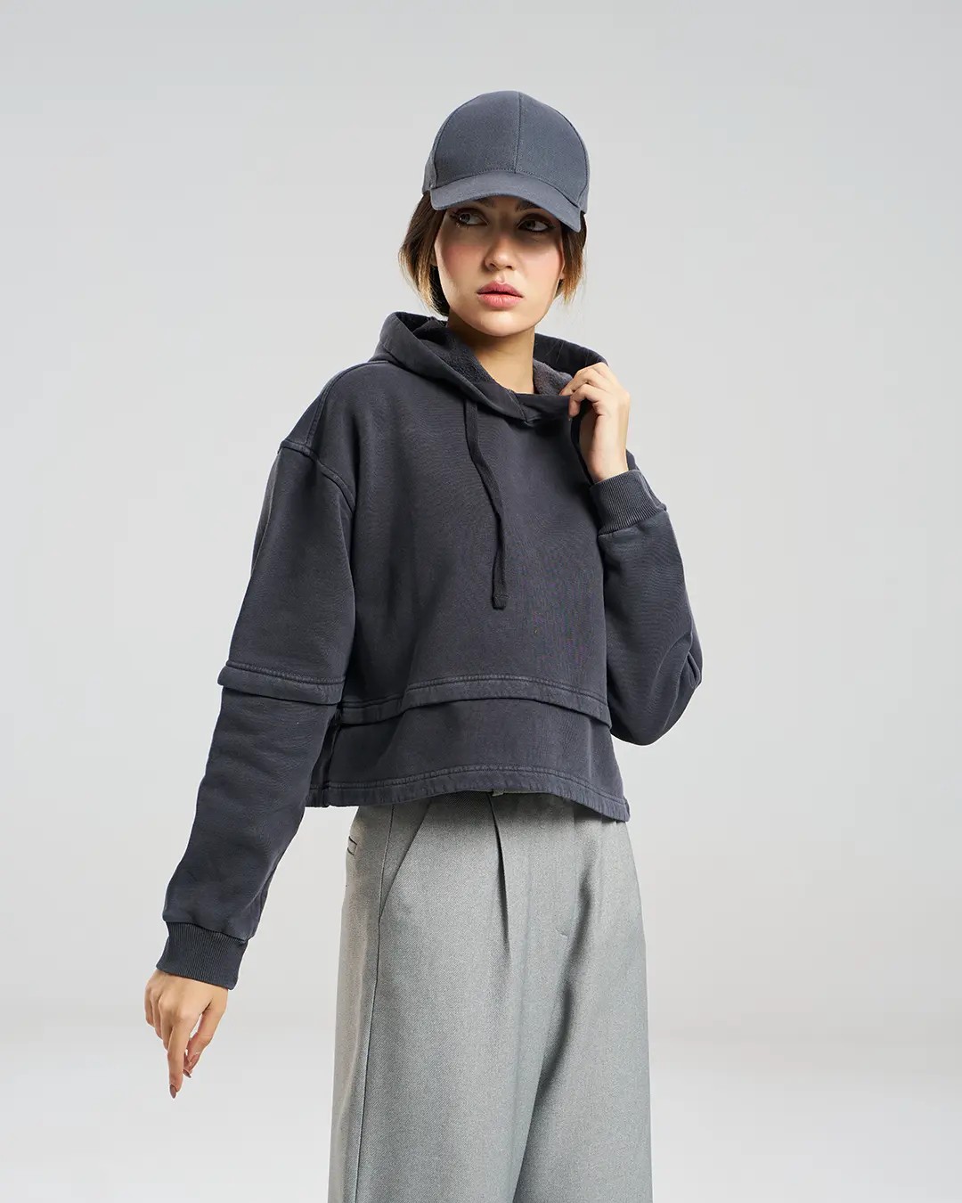جزئیات مدل : هودی کراپ شست رفته برش دار